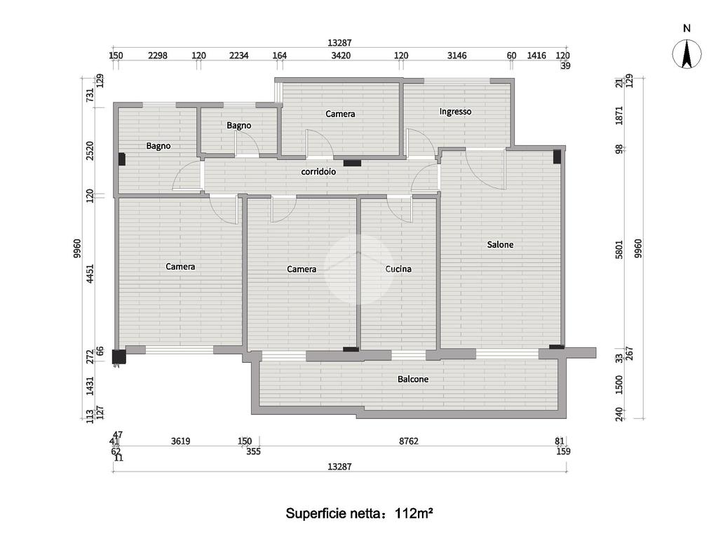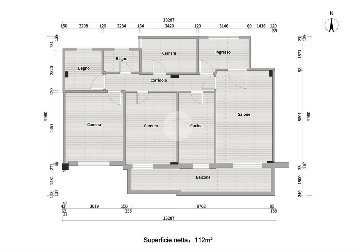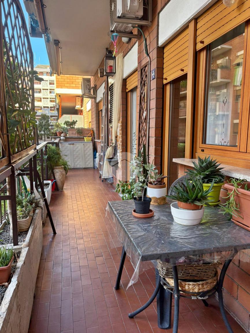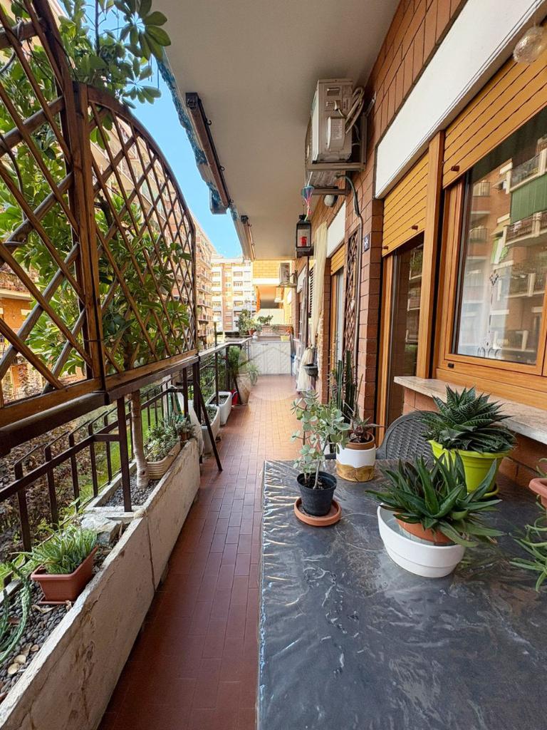 L'immobile si compone di un ampio ingresso che conduce a un luminoso soggiorno a vista, una cucina abitabile, tre camere, doppi servizi e un comodo balcone con affaccio aperto che si estende dal soggiorno alla camera matrimoniale.
